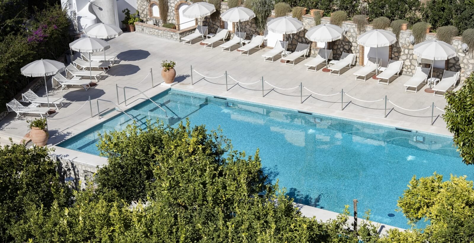 La piscina offre la possibilità di godersi la giornata tra un bagno e una tintarella di sole, rimanendo nel cuore di Capri.